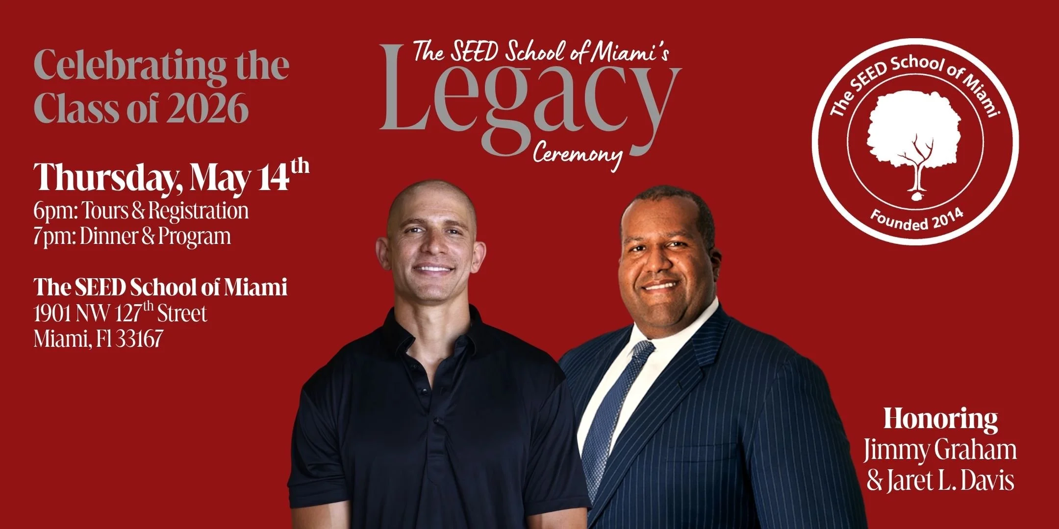 Join us as we celebrate the Class of 2026 and honor our dedicated SEED Champions — Jimmy Graham & Jaret L. Davis.